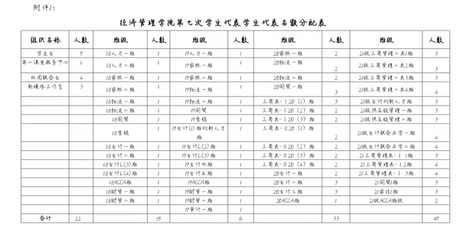 (一)代表名额按照《高校员工代表大会工作规则》,出席bat365在线平台第七次员工代表大会名额135名,占全院员工人数的5%。代表名额一般不低于班级人数的1%,名额分配要覆盖各个年级、专业、班级主要员工组织,具体名额见附件。