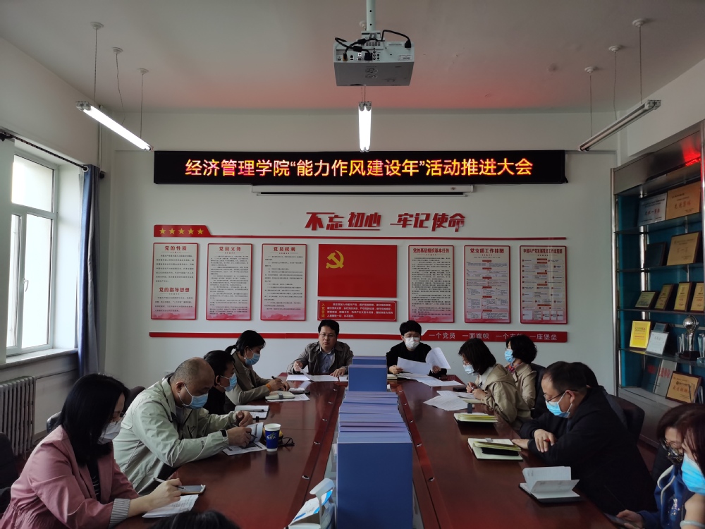 为全面贯彻学校“能力作风建设年”活动推进大会会议精神,5月10日,关于召开“能力作风建设年”活动推进大会。学院领导班子成员、专职组织员、综合办主任、系主任、党支部书记参加会议。
