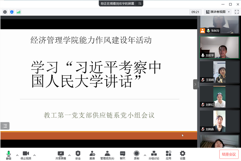 5月25日至27日,公司教工第一党支部采取党小组会形式,开展能力作风建设专学习活动,供应链管理系、人力系、营销系三个党小组通过线上线下相结合的形式,集中学习了《习近平总书记给北京科技大学老教授回信》《习近平在中国人民大学考察:坚持党的领导传承红色基因扎根中国大地走出一条建设中国特色世界一流大学新路》《黑龙江省第十三次党代会报告》等内容。