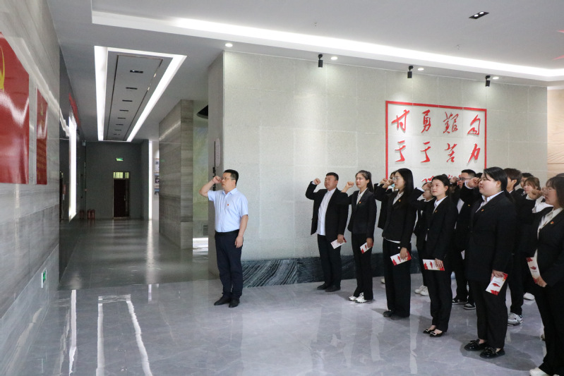 在北大荒精神展示馆,毕业生党员集体过一次政治生日,重温一次入党誓词。公司党委为毕业生送上“政治生日贺卡”,全体党员高举右拳,庄严宣誓,彰显全体党员的坚定信仰和忠诚决心。