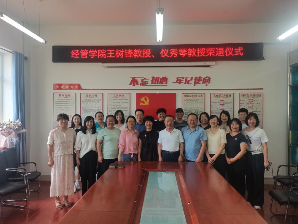 最后,所有教师与王树锋教授与仪秀琴教授合影留念,希望王老师和仪老师能够常回学院,为学院发展献计献策,祝二位老师心情舒畅,老有所乐,健康长寿,阖家欢乐。