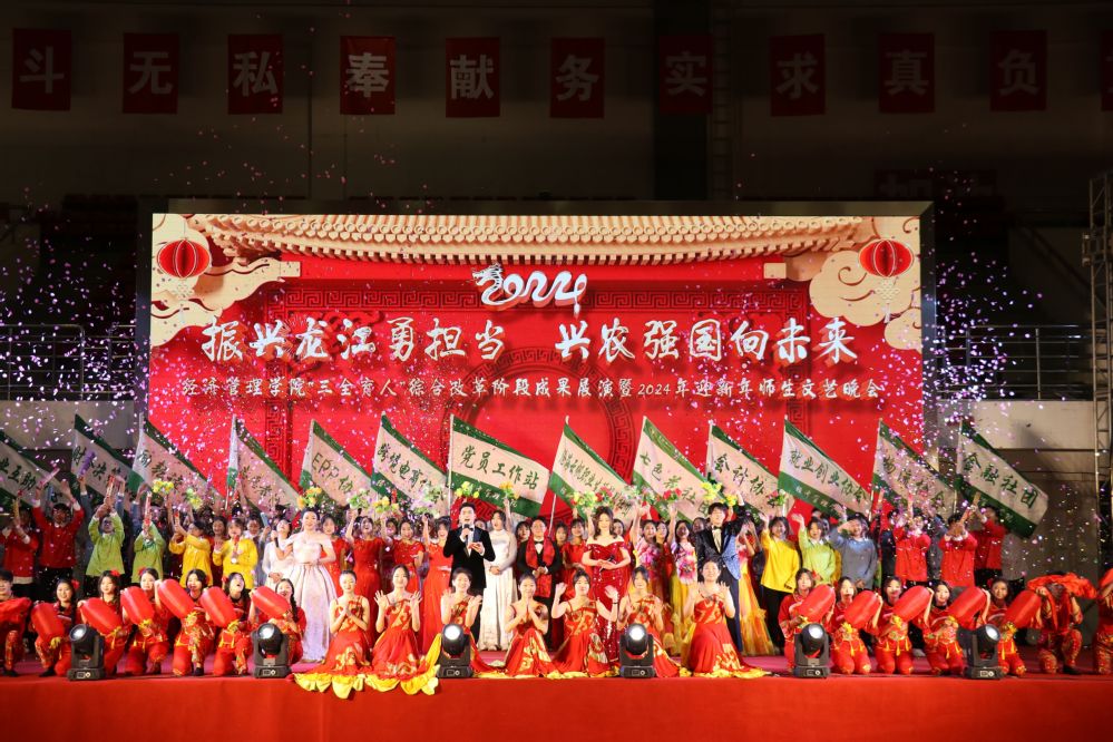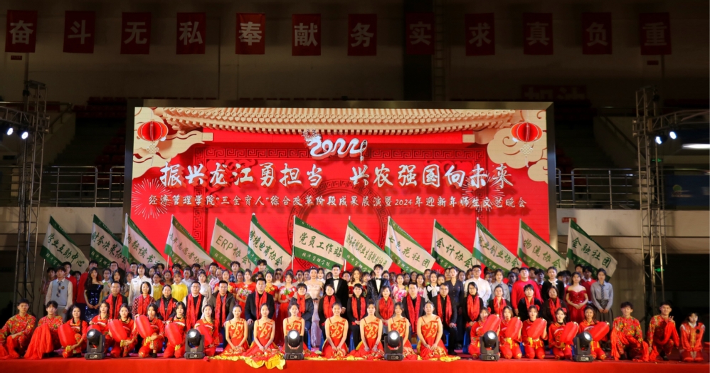 为展示“三全育人”综合改革新进展、新成效,交流分享好经验、好做法,激励师生凝心聚智推动学校学院高质量发展,12月17日晚,bat365在线平台在体育馆举办“振兴龙江勇担当 兴农强国向未来”“三全育人”综合改革阶段成果展演暨2024年迎新年师生文艺晚会。公司党委副书记高宏,部分机关职能处室领导,兄弟学院学工战线成员,校、各学院员工组织管理层以及学院师生代表等2000余人共同欣赏了这场精彩又温暖的视听盛宴。