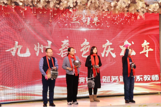 语言类节目是由财管系表演的三句半《九州春色庆龙年》,春日春风春浩荡,龙年龙岁龙吉祥,用青春的热情迎接美好的新一年。