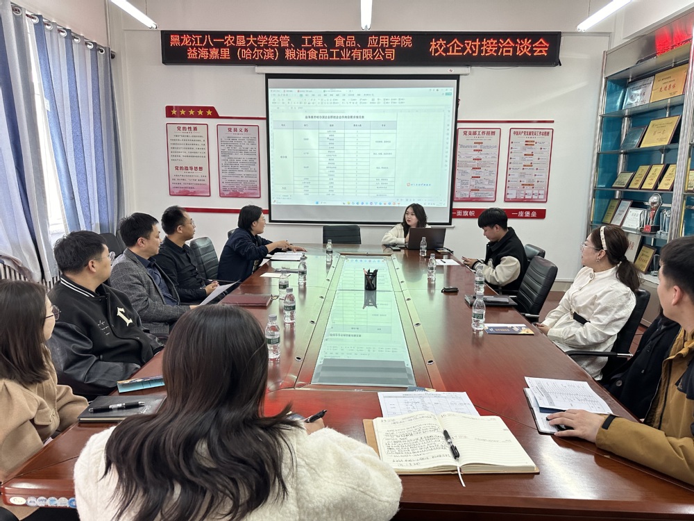 益海嘉里(哈尔滨)粮油食品工业有限公司代表从企业简介、企业文化、用人需求、薪资待遇等方面介绍公司基本情况。各公司党委副书记及就业辅导员与企业代表进行深入交流,进一步了解企业的发展状况、业务范畴及岗位的工作内容、晋升空间等内容。双方就后续如何开展“3+1”“实习+就业”校企联合培养等问题展开深入探讨,互相交换了宝贵意见,就共同为员工提供就业帮助,实现校企互利共赢达成一致。